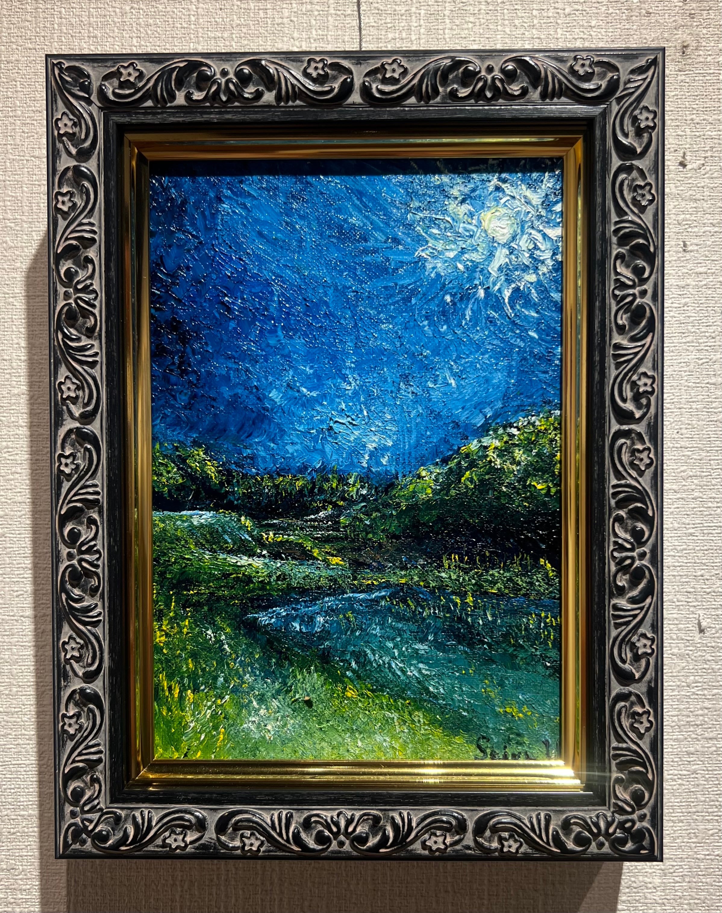 SM 油彩画 2024年制作 実家の近くの自然が沢山の場所を筆の代わりに落ち葉と枝を使って描いた作品。